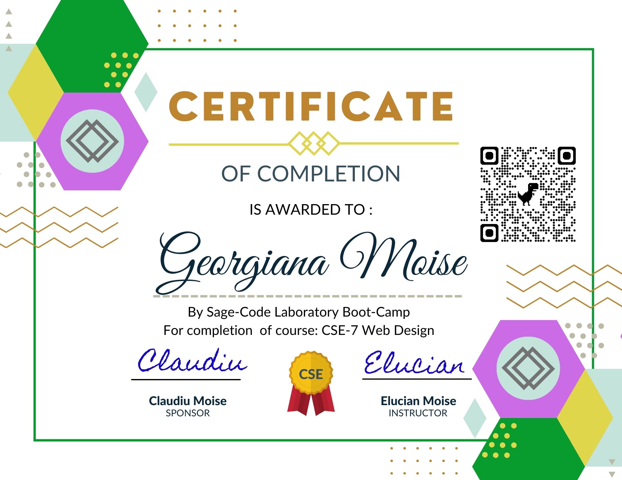 Georgiana is self-motivate student at Sage-Code Laboratory. She study programming languages and software engineering with professional mentors. Georgiana take quizzes and is improving her skills making code examples.